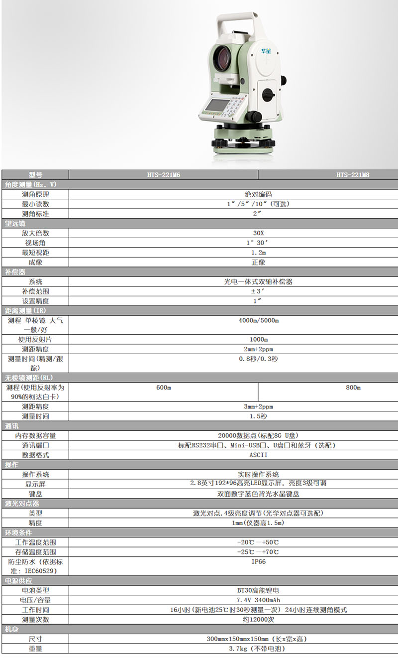 中海达华星HTS-221M小型化系列全站仪
